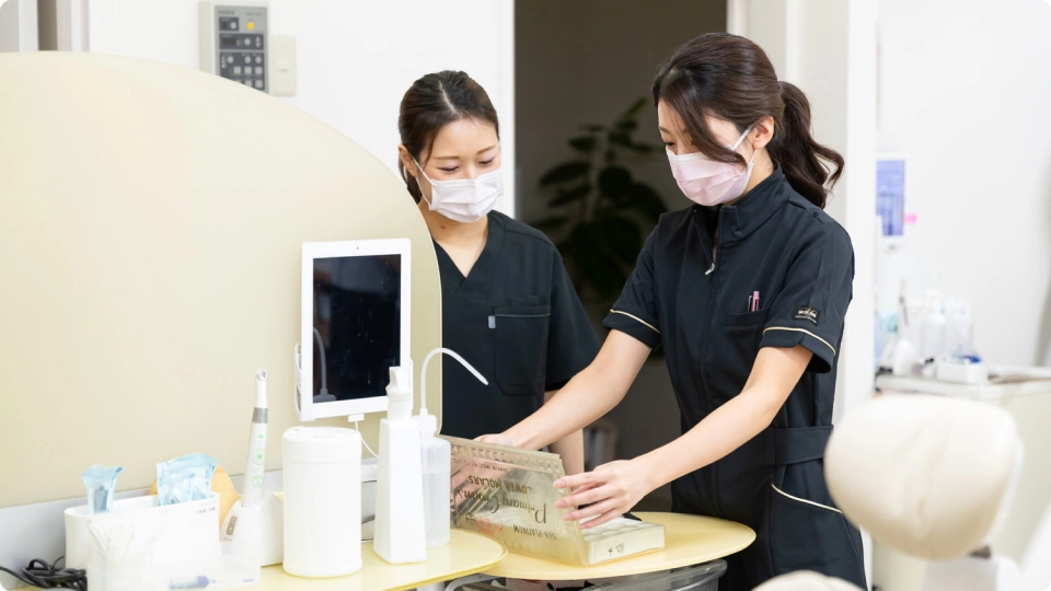 トレーニングとみい歯科クリニックでは、ドクターとスタッフが一体となって成長できる独自の研修制度を設けています。歯科治療の理論や技術はもちろん、歯科衛生士の接遇面のトレーニングも重視し、定期的な勉強会を実施しています。